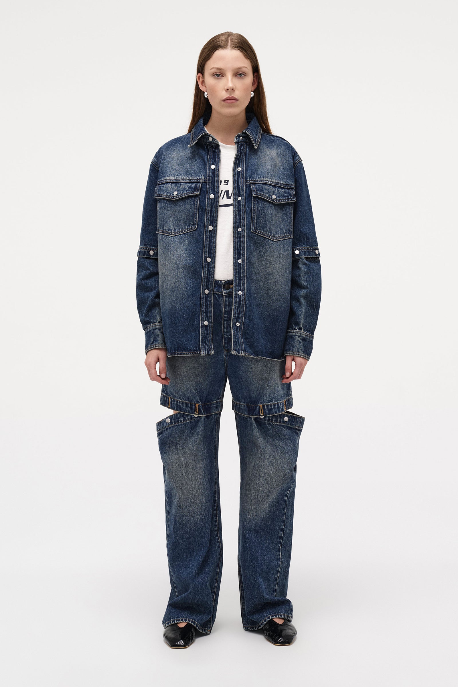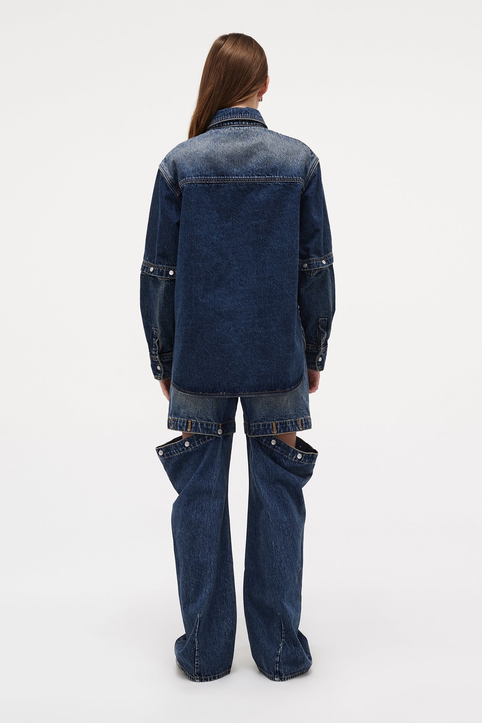 - Features a unique snap-button placket design at the elbow: fully remove sleeves for a short-sleeve variation or partially undo for playful proportion changes