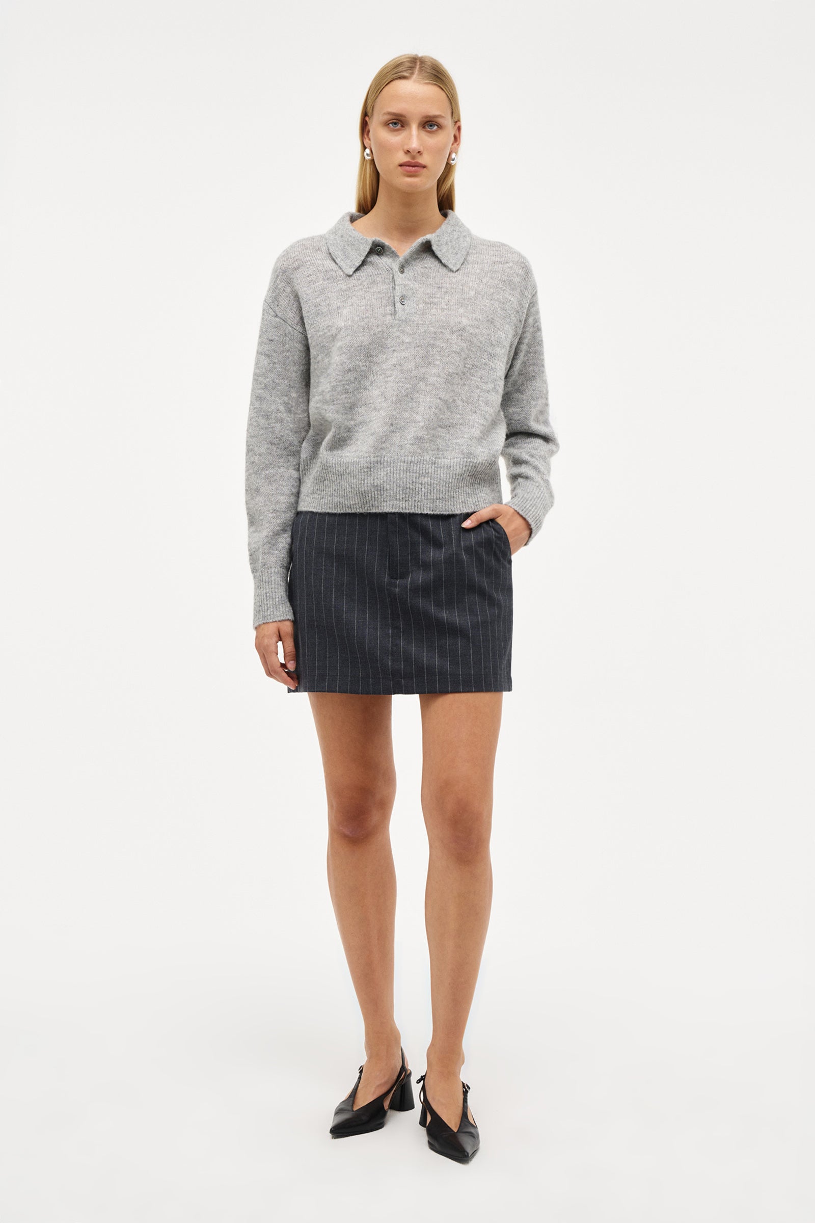 - Low-rise mini skirt designed to sit on the hips for a modern, effortless look