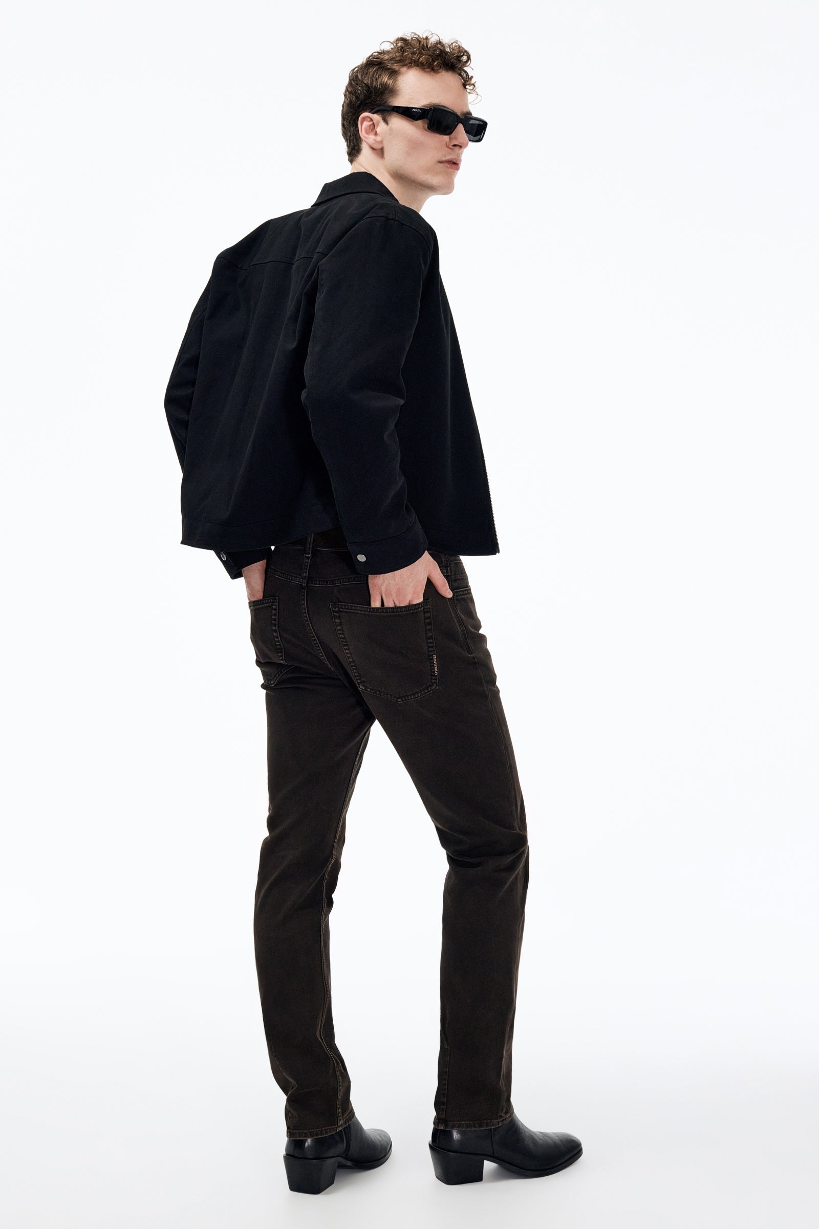 - Offers a traditional cut with a straight leg from thigh to hem for a relaxed silhouette