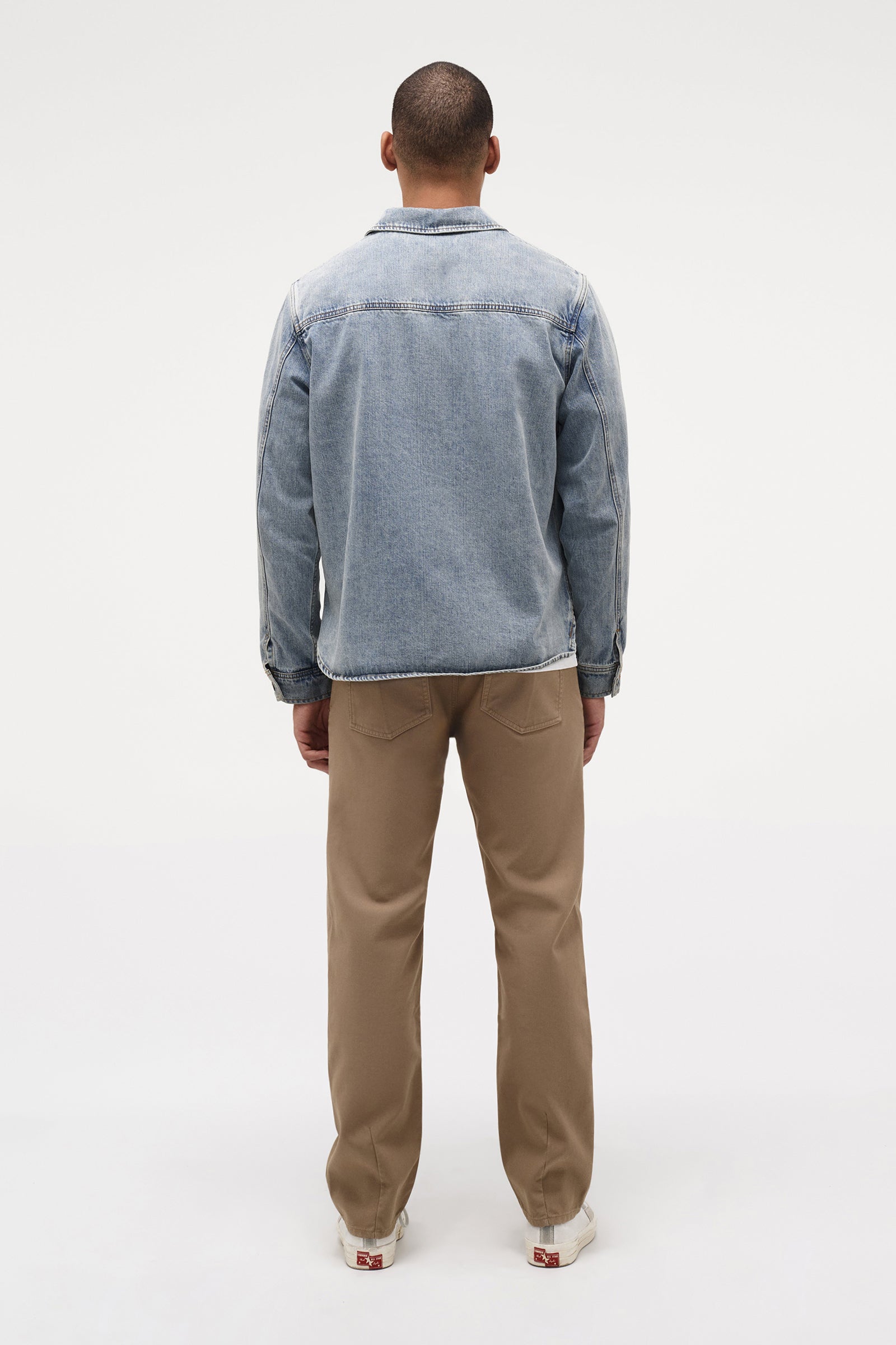 - A relaxed straight-leg pant with a slight taper, sitting comfortably at the waist and falling at the top of the shoe