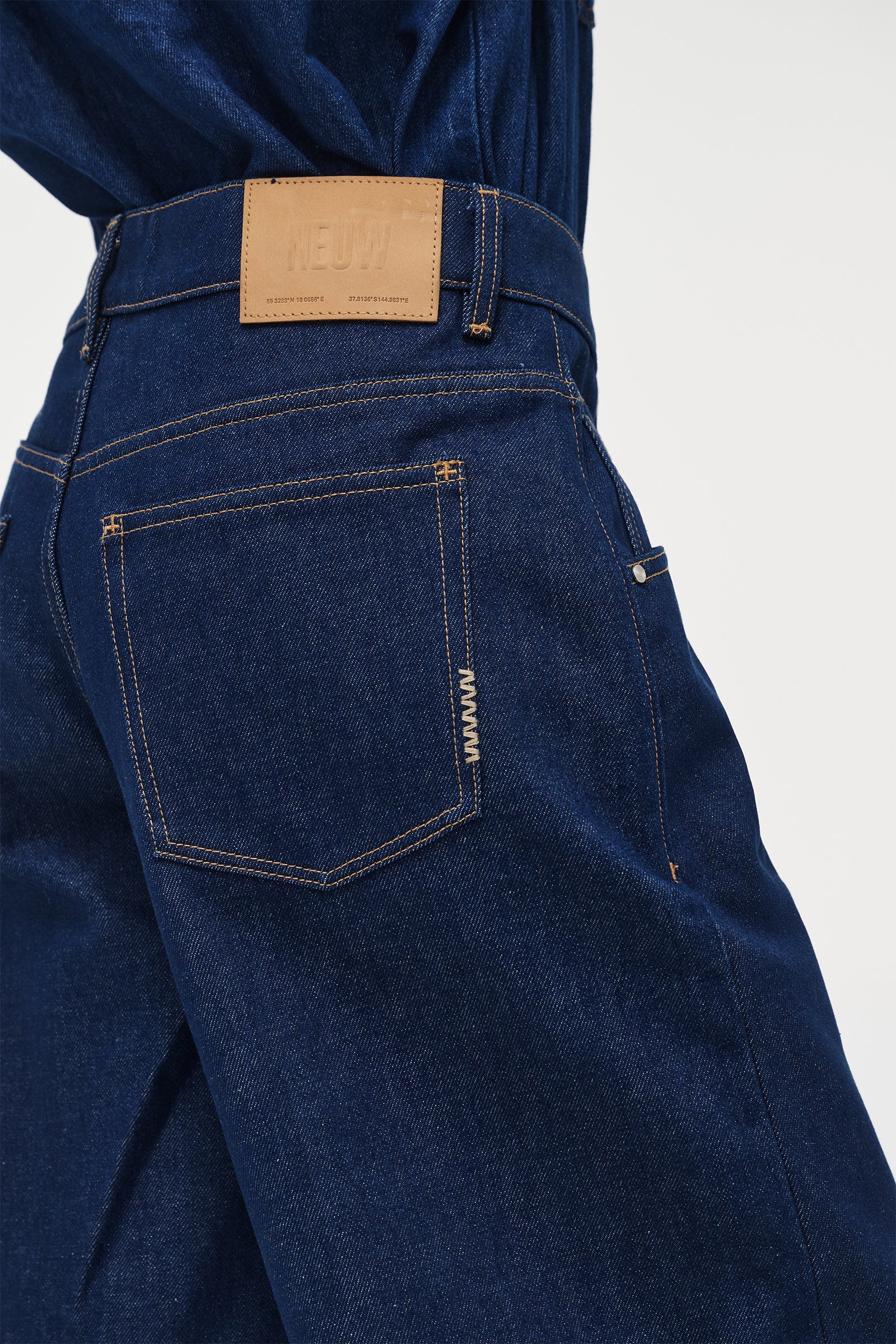 - Crafted from raw denim, using minimal water in production to retain its vibrant bright indigo tone