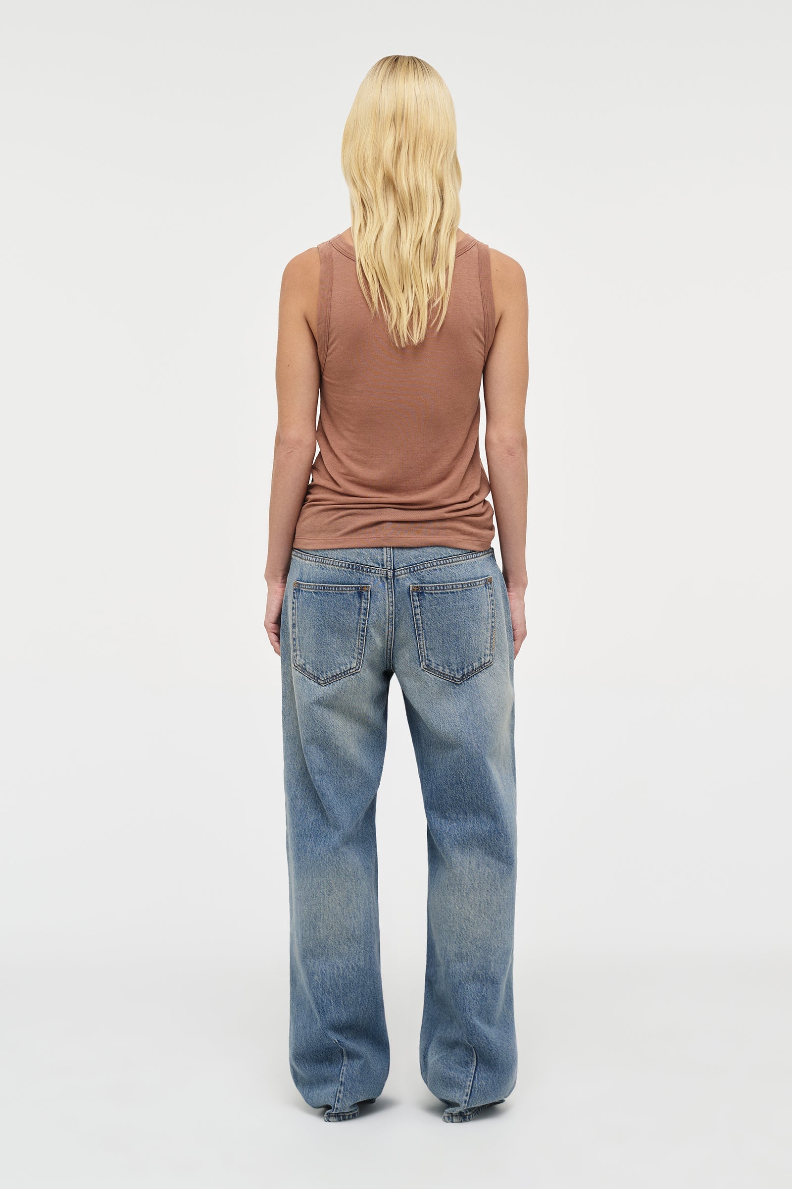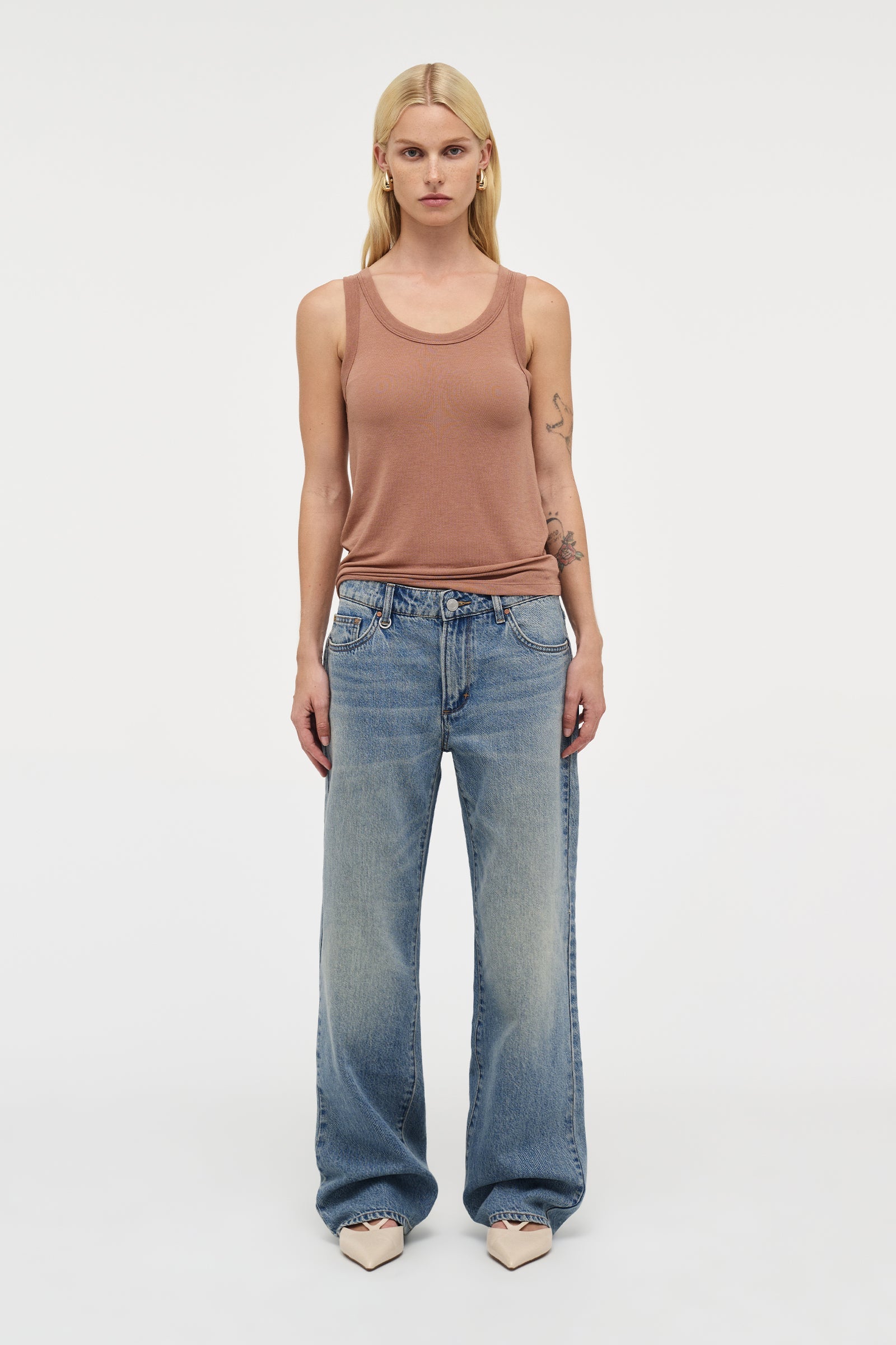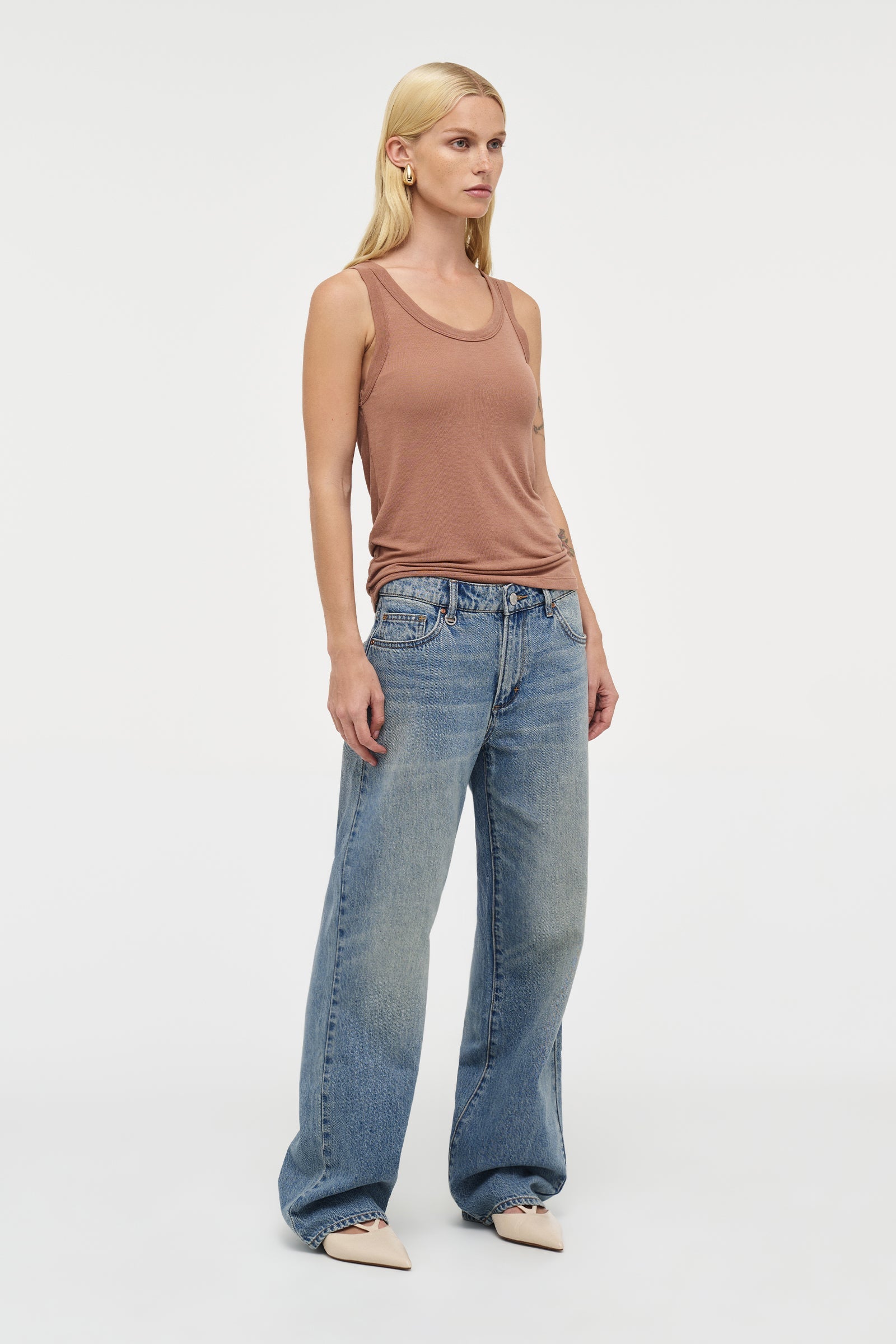 - Style tucked into high-waisted denim or layered under an open shirt for a relaxed, warm-weather edit