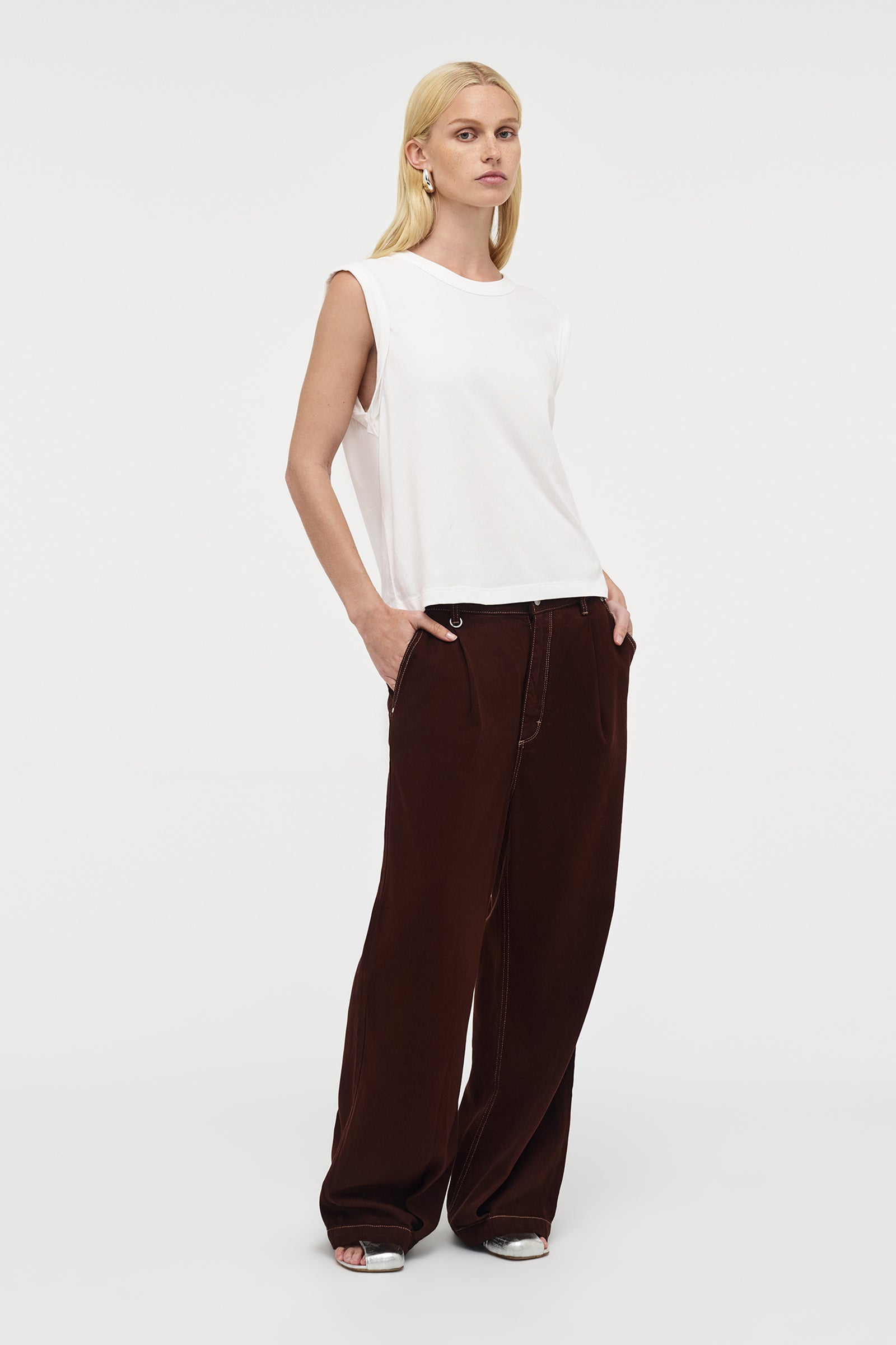 - Designed to be worn low on the hips for an effortless, slouchy look, it can also be belted at the waist for a gathered, paper-bag effect