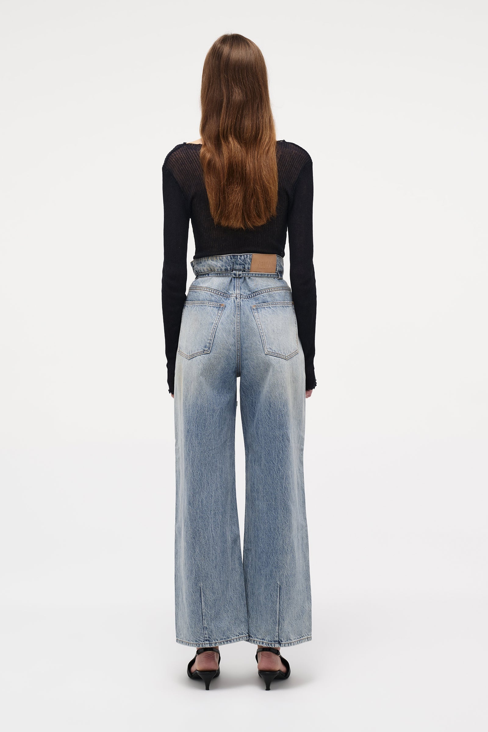 - Traditional belt loops have been removed in favour of minimalist mini loops positioned beneath the waistband