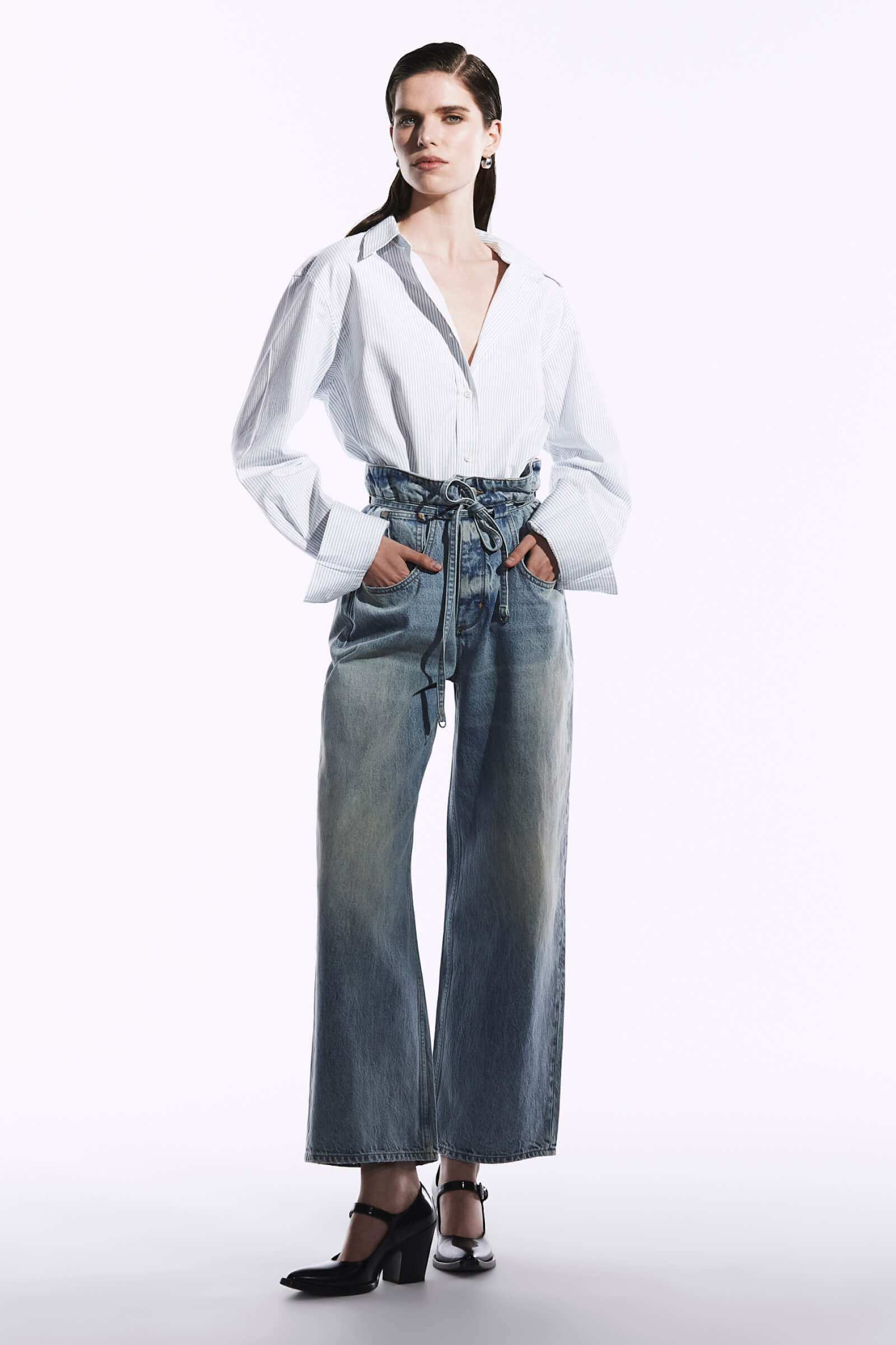 - Designed to be worn low on the hips for an effortless, slouchy look, super-scooped front pockets enhance the exaggerated paperbag waist silhouette